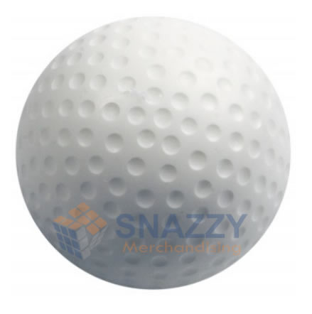 Pelota golf antiestrés, color blanco, diámetro de 6.3 cm aproximadamente.
