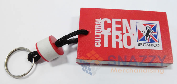 Llavero microporoso, troquelado en forma de galón, embolsado individual.